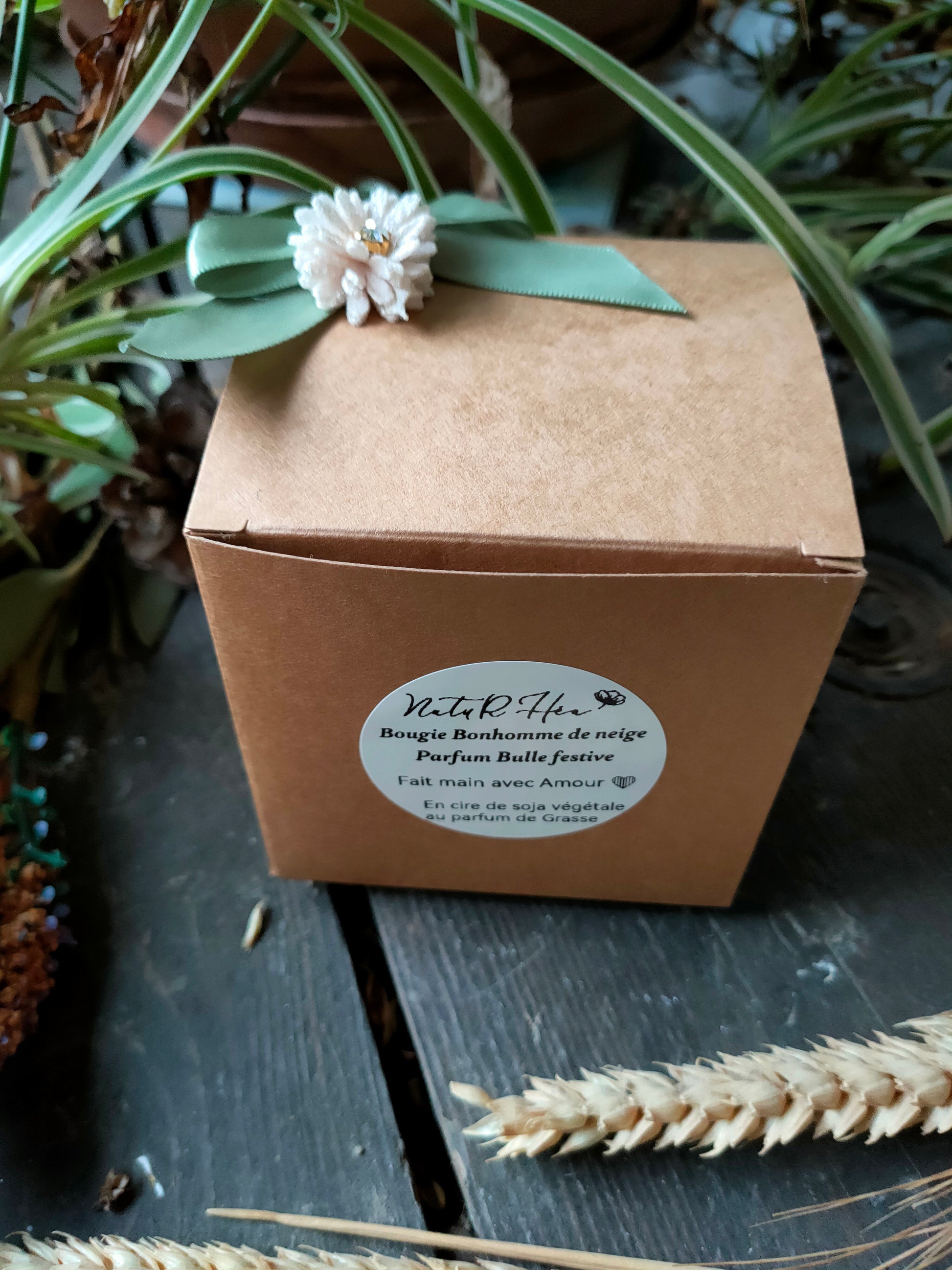Découvrez la bougie Bonhomme de neige. Une création hivernale pleine de tendresse. Ce petit bonhomme de neige en cire végétale apporte une touche de poésie et de chaleur à votre intérieur. Son parfum Bulle festive , à la fois doux et pétillant, évoque la magie des fêtes et les moments partagés en famille.