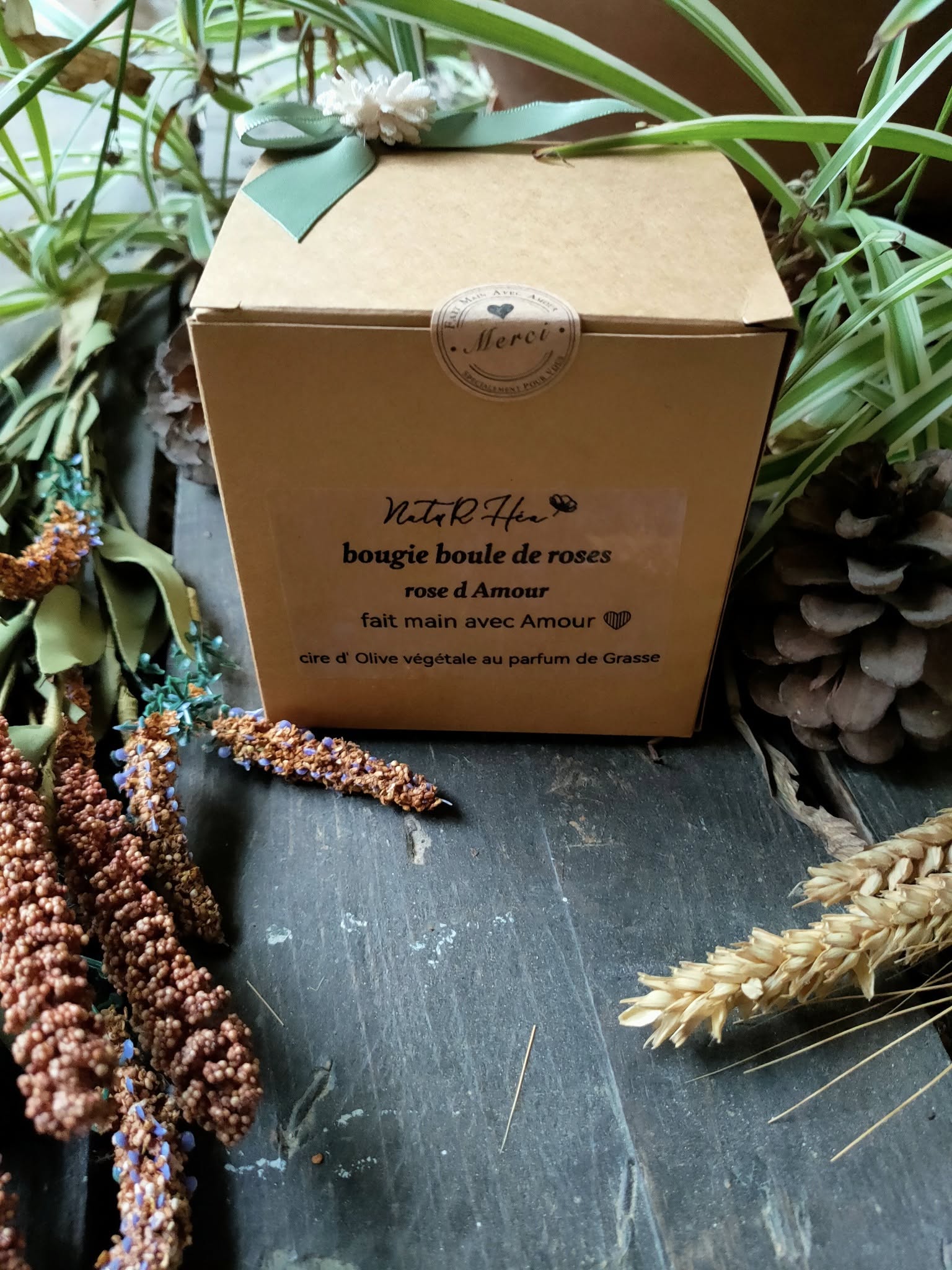 Cette bougie en forme de boule, décorée de roses en cire végétale, fait à la main agrémentera votre intérieur. Son côté sublime, son parfum rose d'amour sont une véritable expérience olfactive et visuelle. Sa fragrance vous enveloppera d'une ambiance romantique et raffiné, idéal pour les soirées cosy