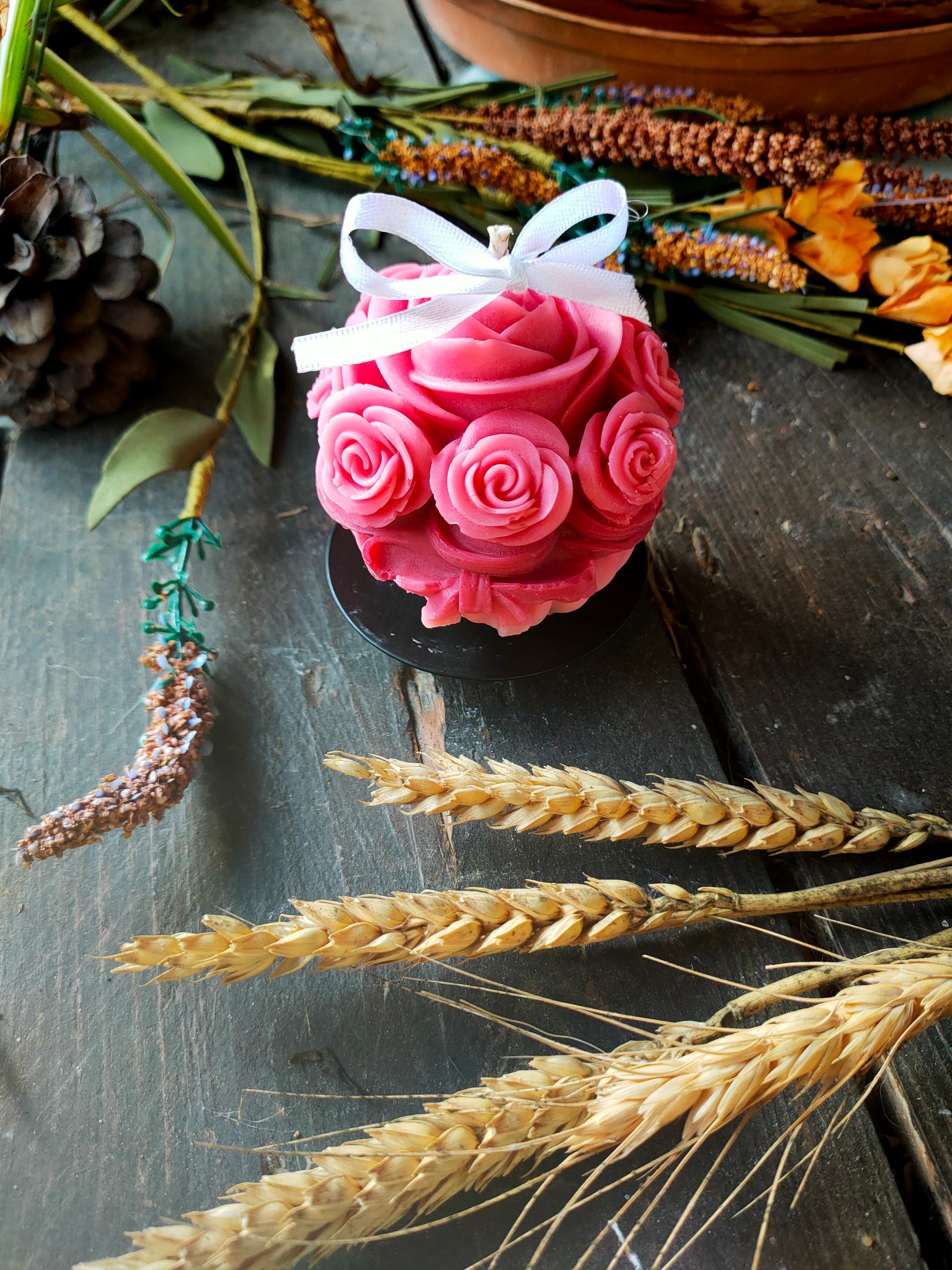 Cette bougie en forme de bouquet de roses est une création artisanale réalisée à la main dans mon atelier. Chaque rose est minutieusement travaillée pour offrir un rendu délicat et élégant, faisant de cette bougie un véritable objet décoratif.