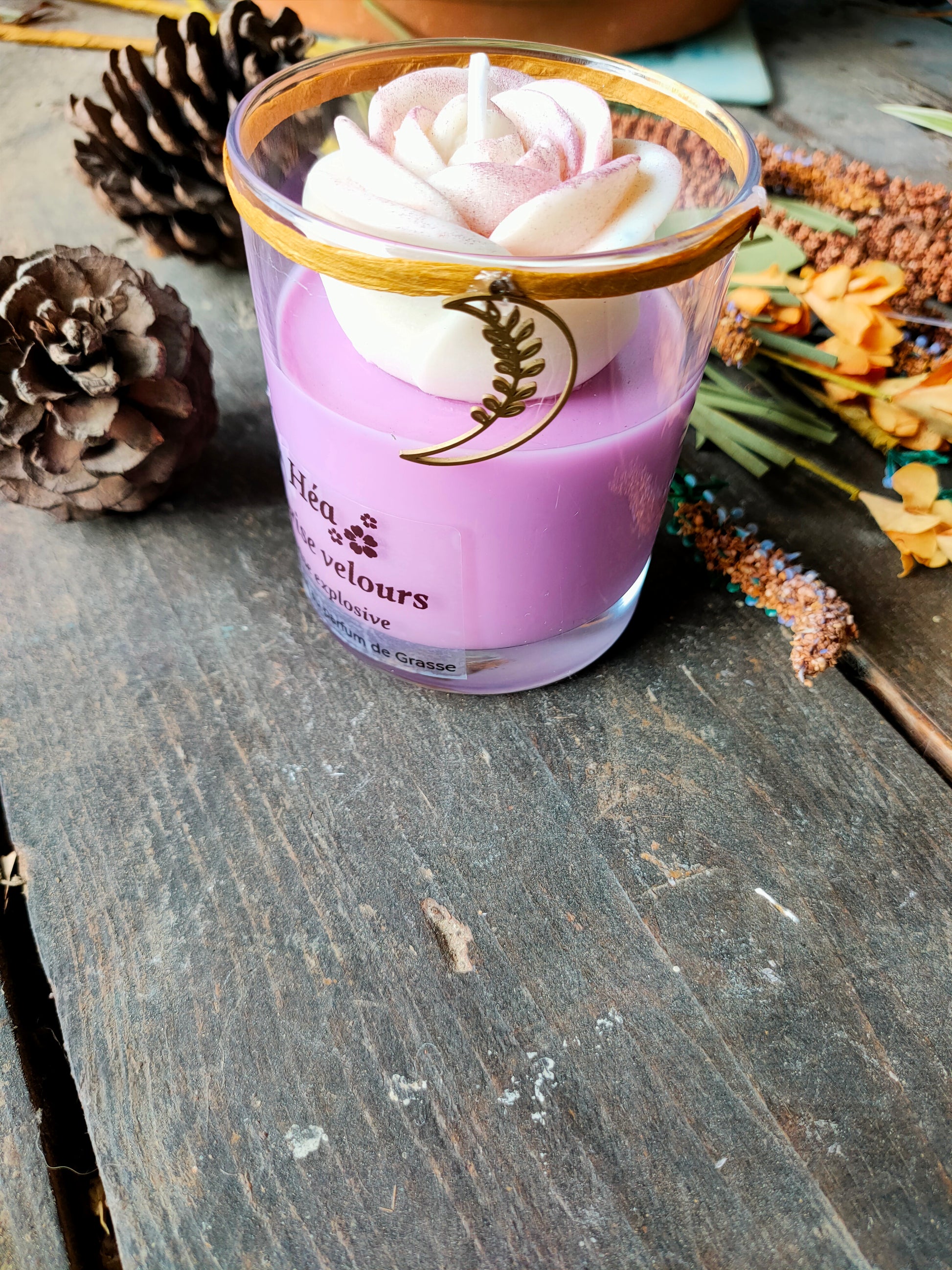 Chaque bougie est unique, réalisée artisanalement dans mon atelier, avec des parfums de Grasse soigneusement sélectionnés.
