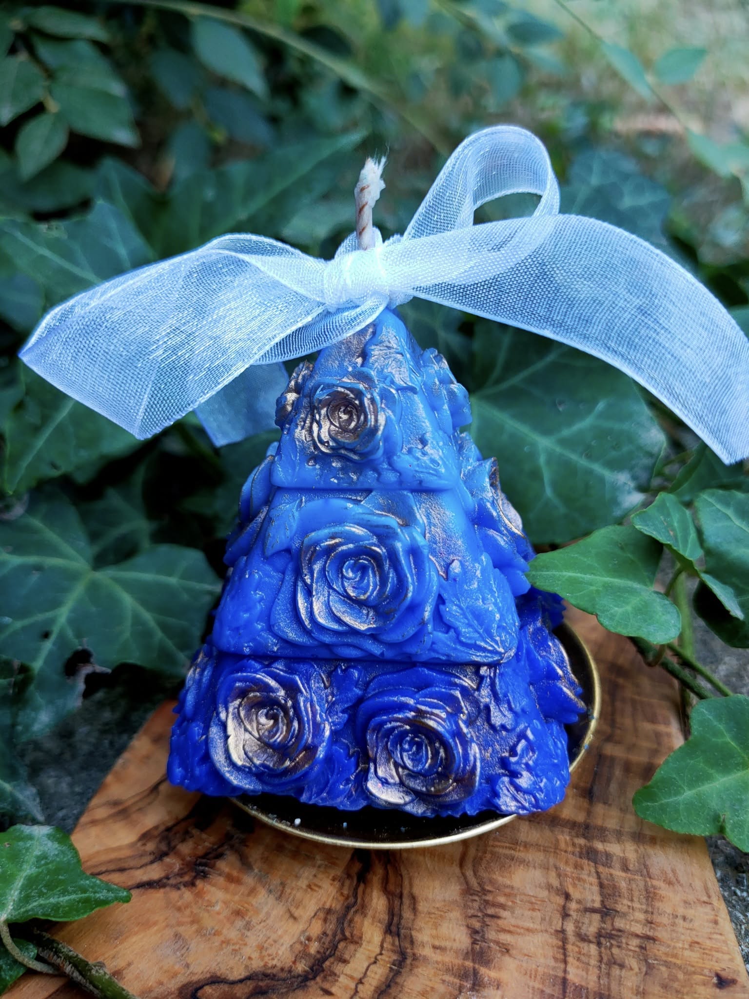 La bougie Cléopatra . Un petit clin d'œil à l'Egypte avec cette bougie en forme de pyramide décorée de roses moulée à la main en cire végétale, au parfum de Grasse senteur Fleur de coton .une fragrance évoquant la douceur d'un linge frais, s'ouvrant sur des notes douce de roses et de ylang-ylang. Un parfum apaisant