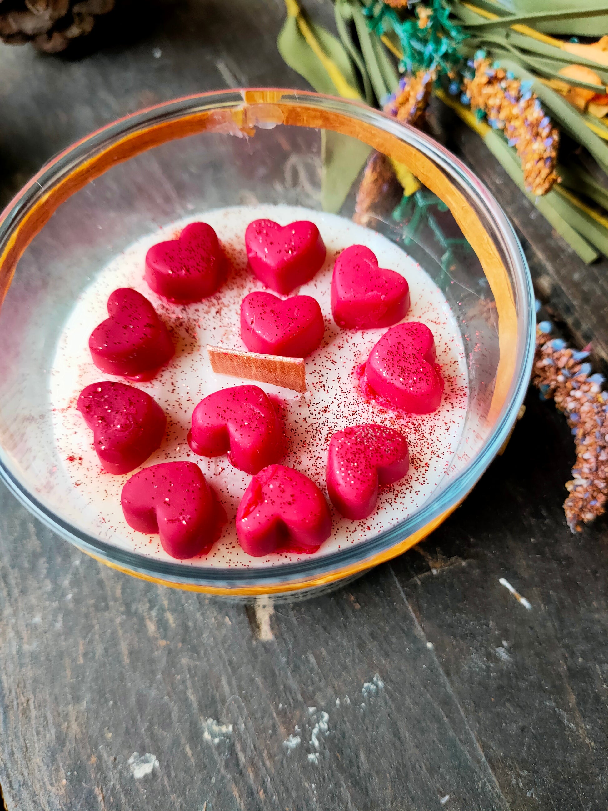 La bougie Cœur à Cœur est une création artisanale délicate, pensée pour symboliser la tendresse, le partage et les émotions sincères.