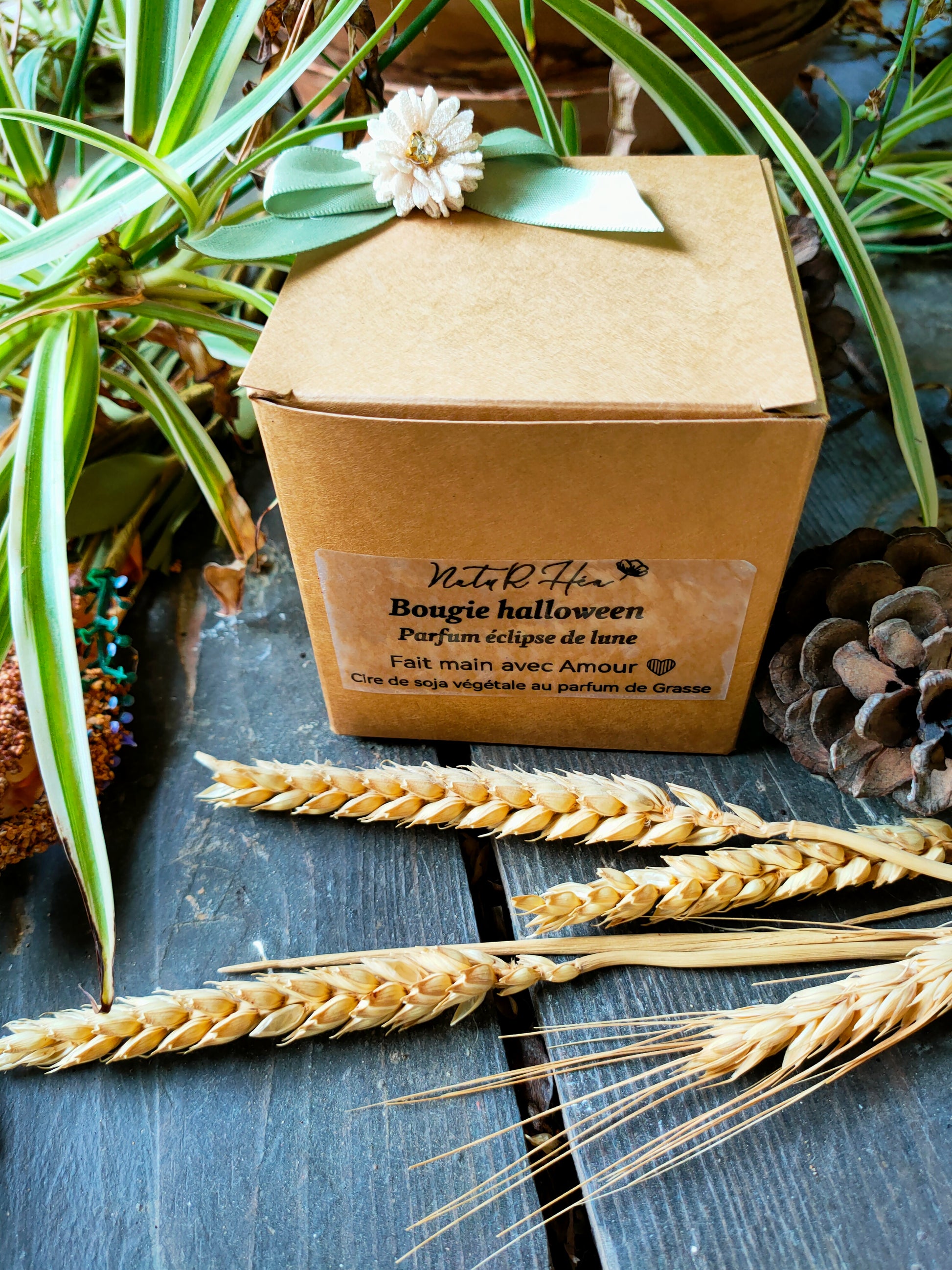 La bougie Halloween en cire végétale décorera à merveille votre intérieur pour cette occasion . Son parfum Eclipse de lune, vous envoutera, il allie mystère et délicatesse. Une expérience sensorielle unique, entre douceur nocturne et poésie étoilée. il apporte une touche de mystère et de sérénité.