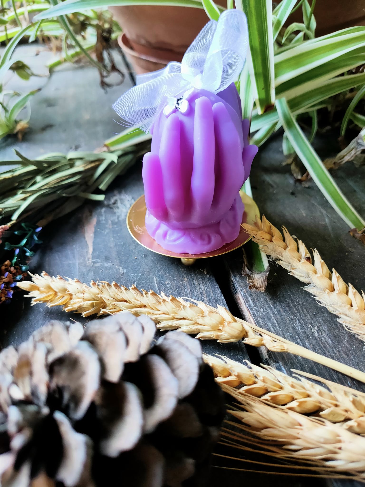 - Disposez la bougie sur un support en bois, résine, roche, verre ..... et allumez là