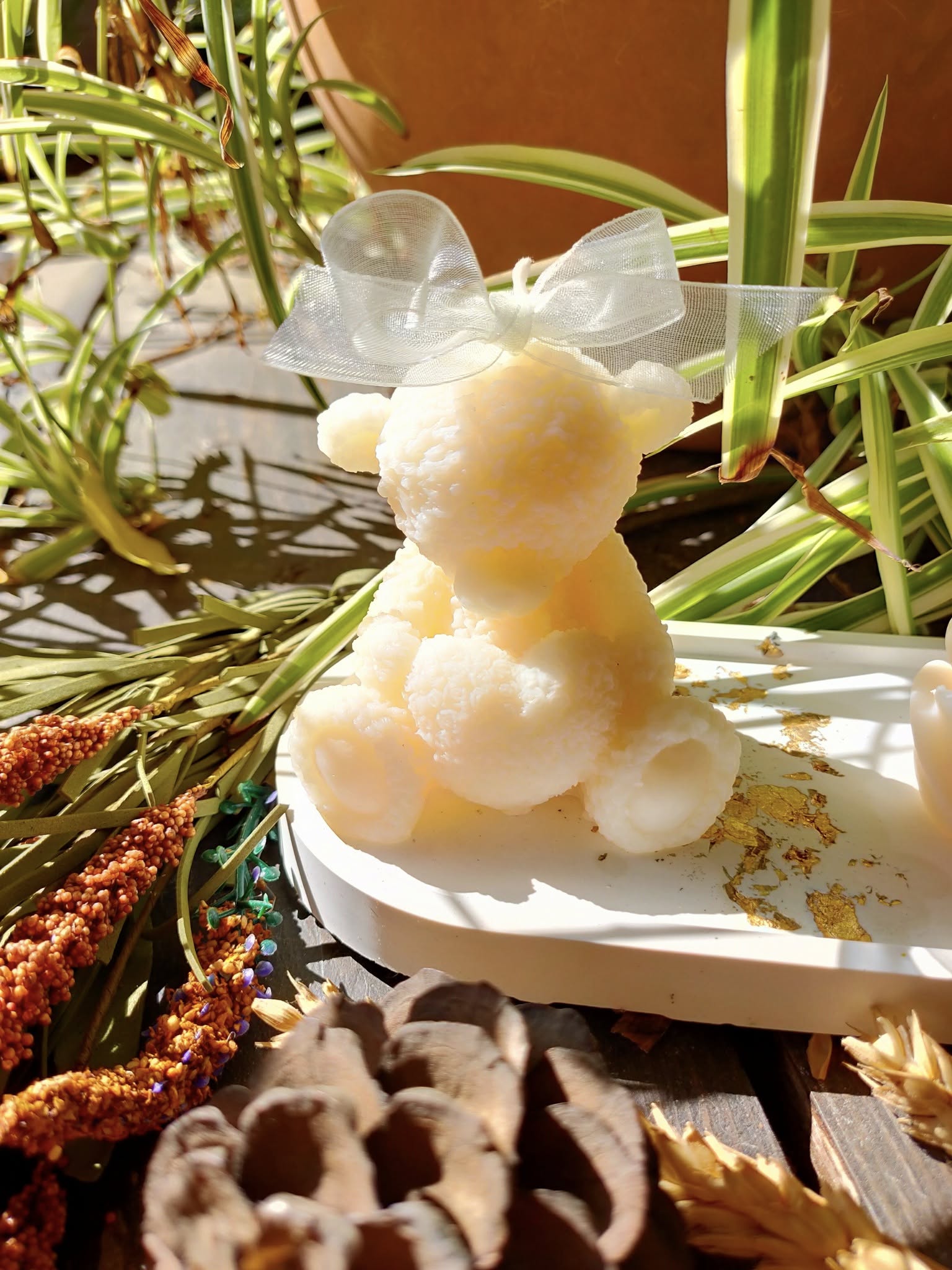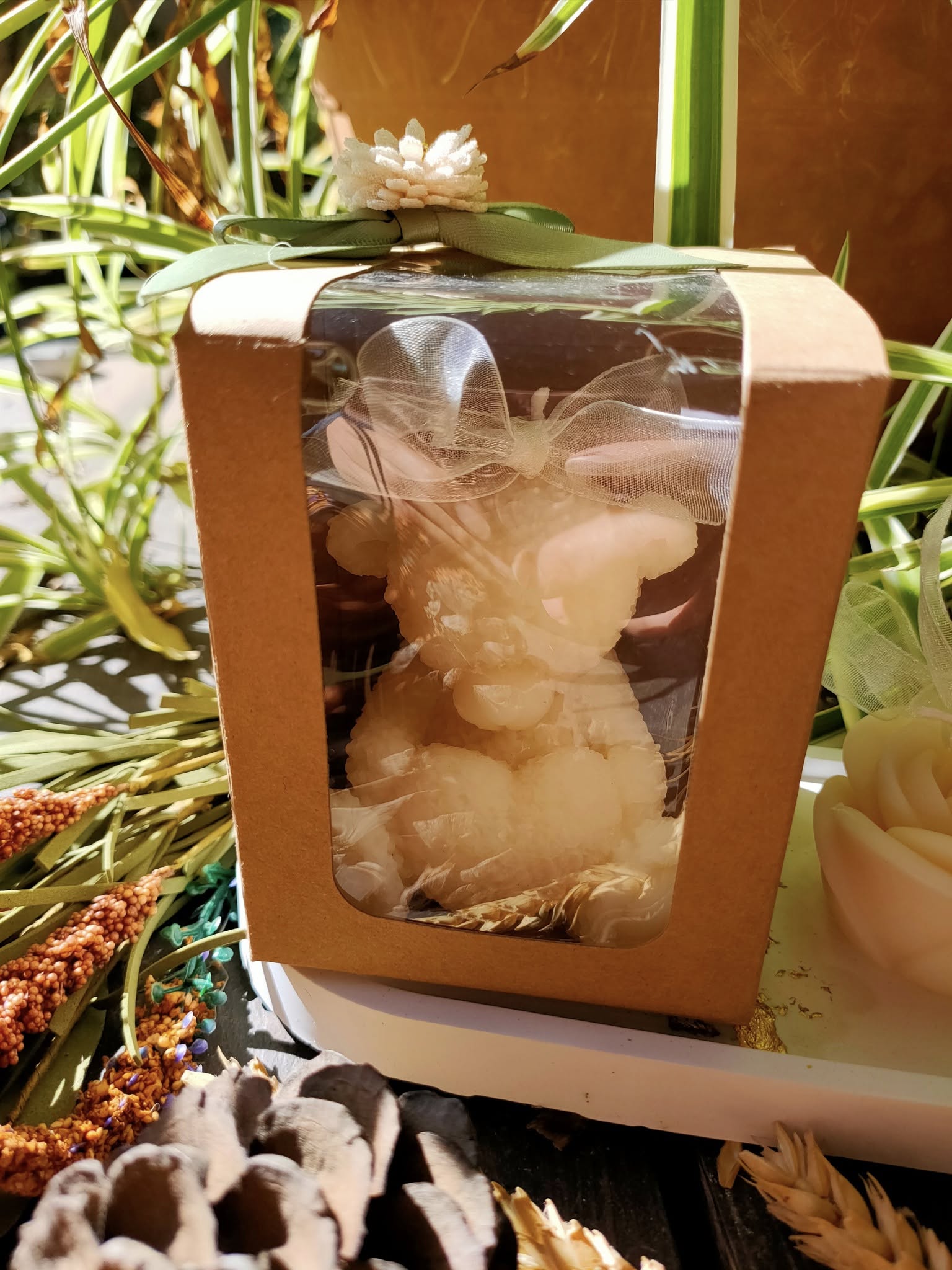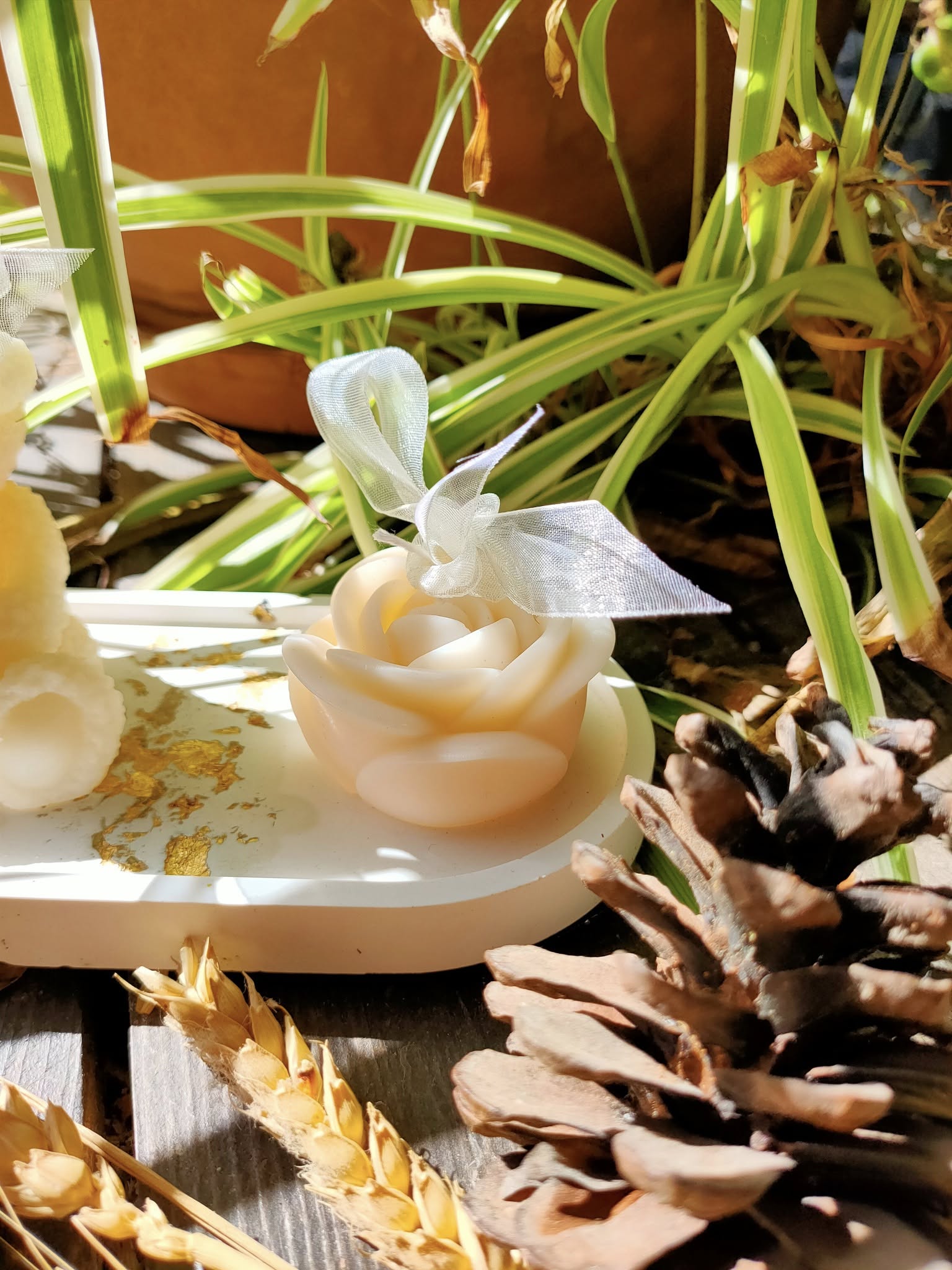 - Ourson et rose en cire d'olive végétale de haute qualité, sans OGM, 100% naturelle, végétalien, biodégradable, sans produits dérivés du palmier, sans paraffine, non testé sur les animaux (cruelty-free)