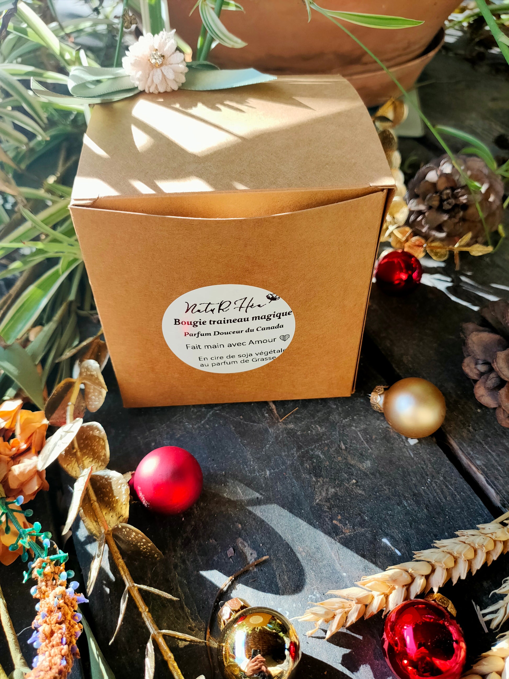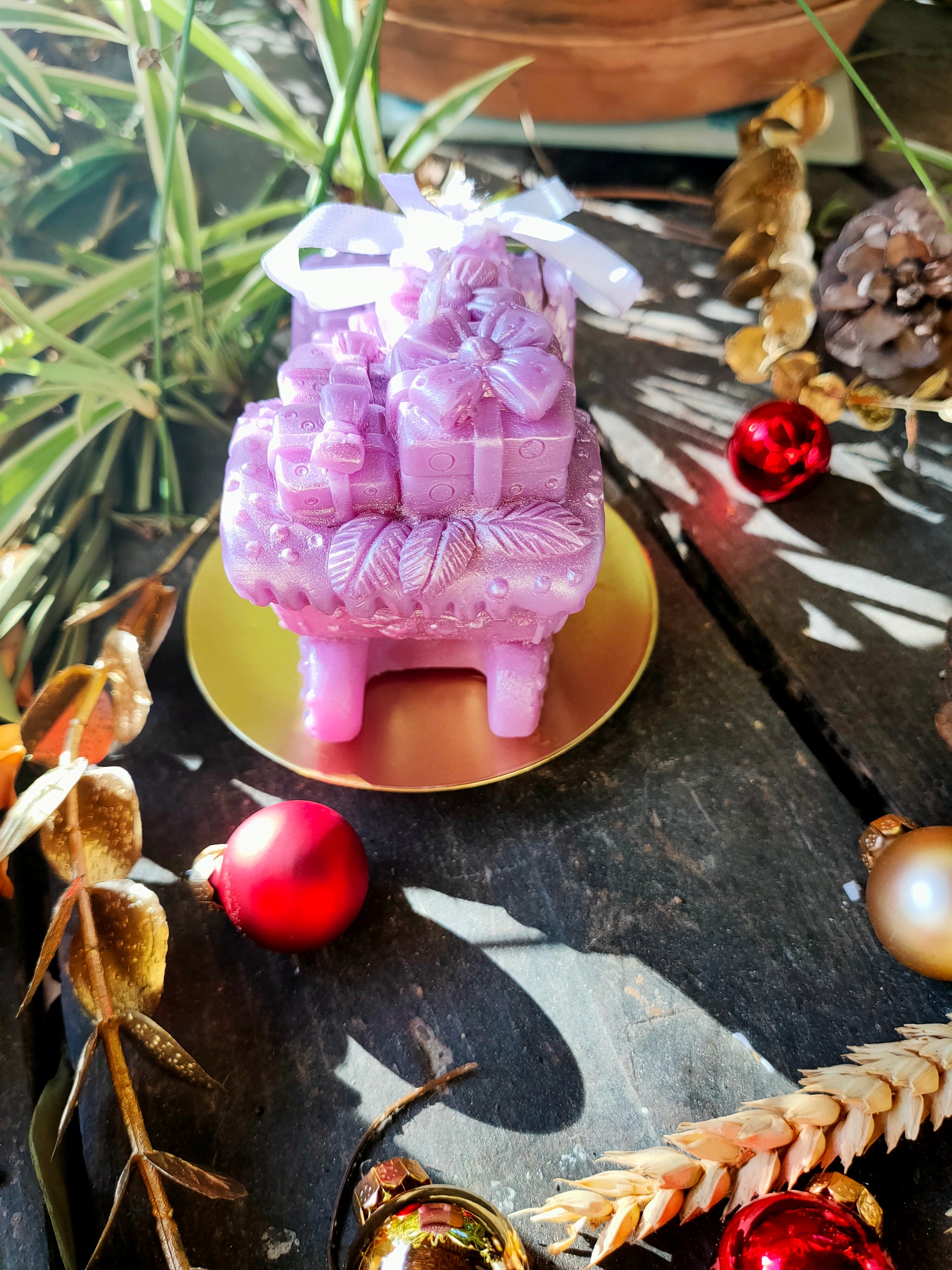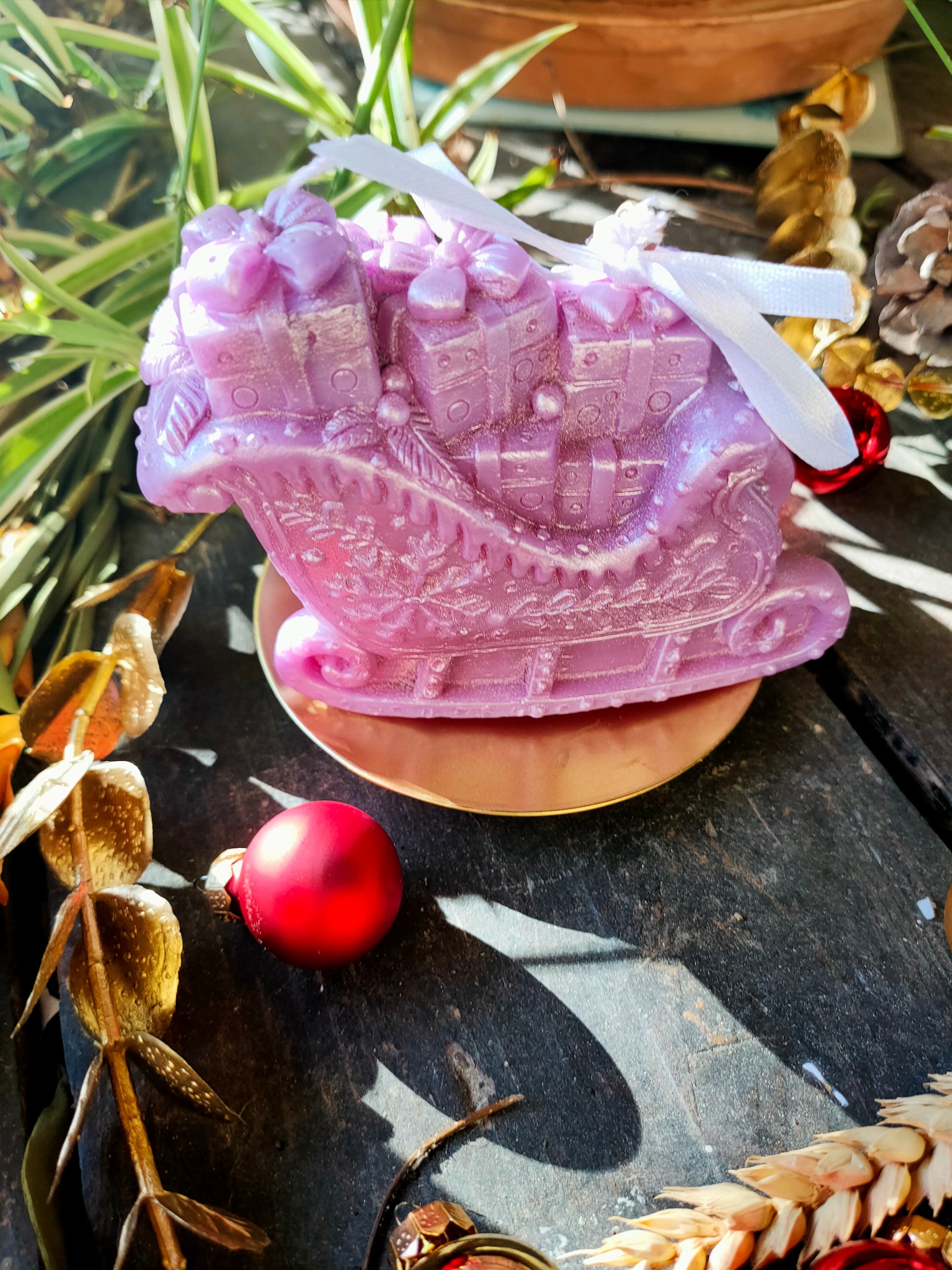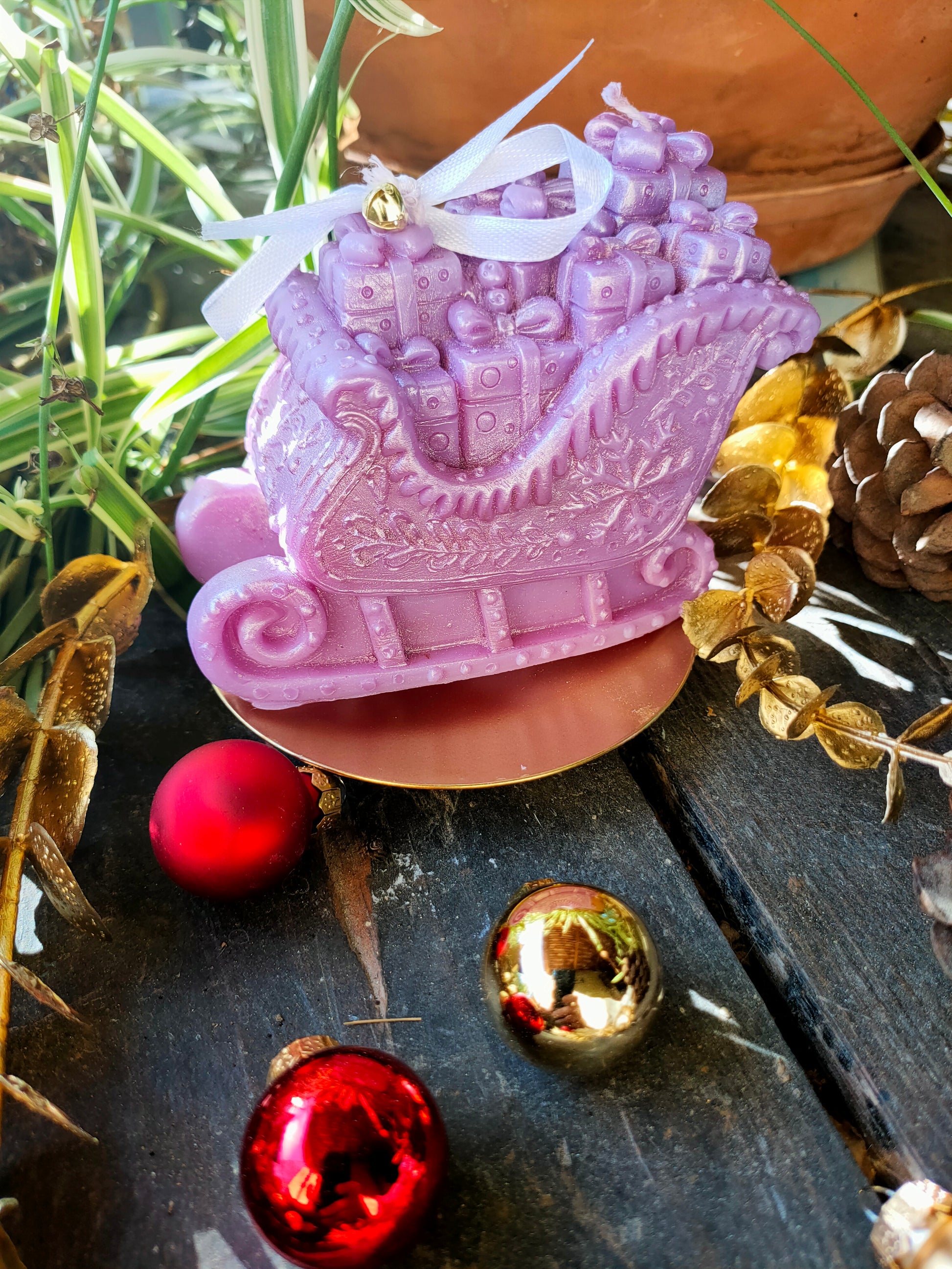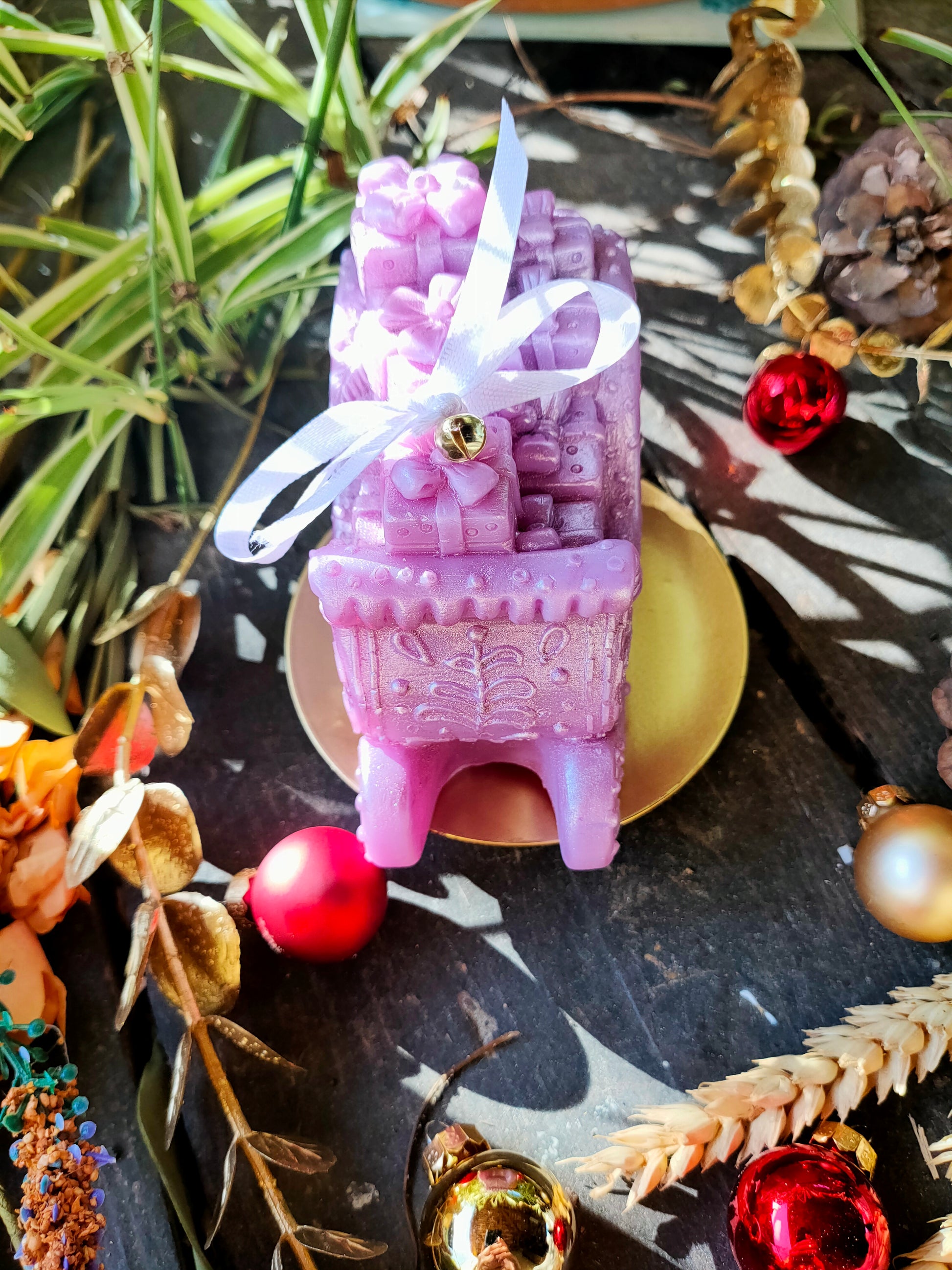 Embarquez pour un voyage féerique au cœur de l'hiver avec ce traineau scintillant rempli de cadeaux.
