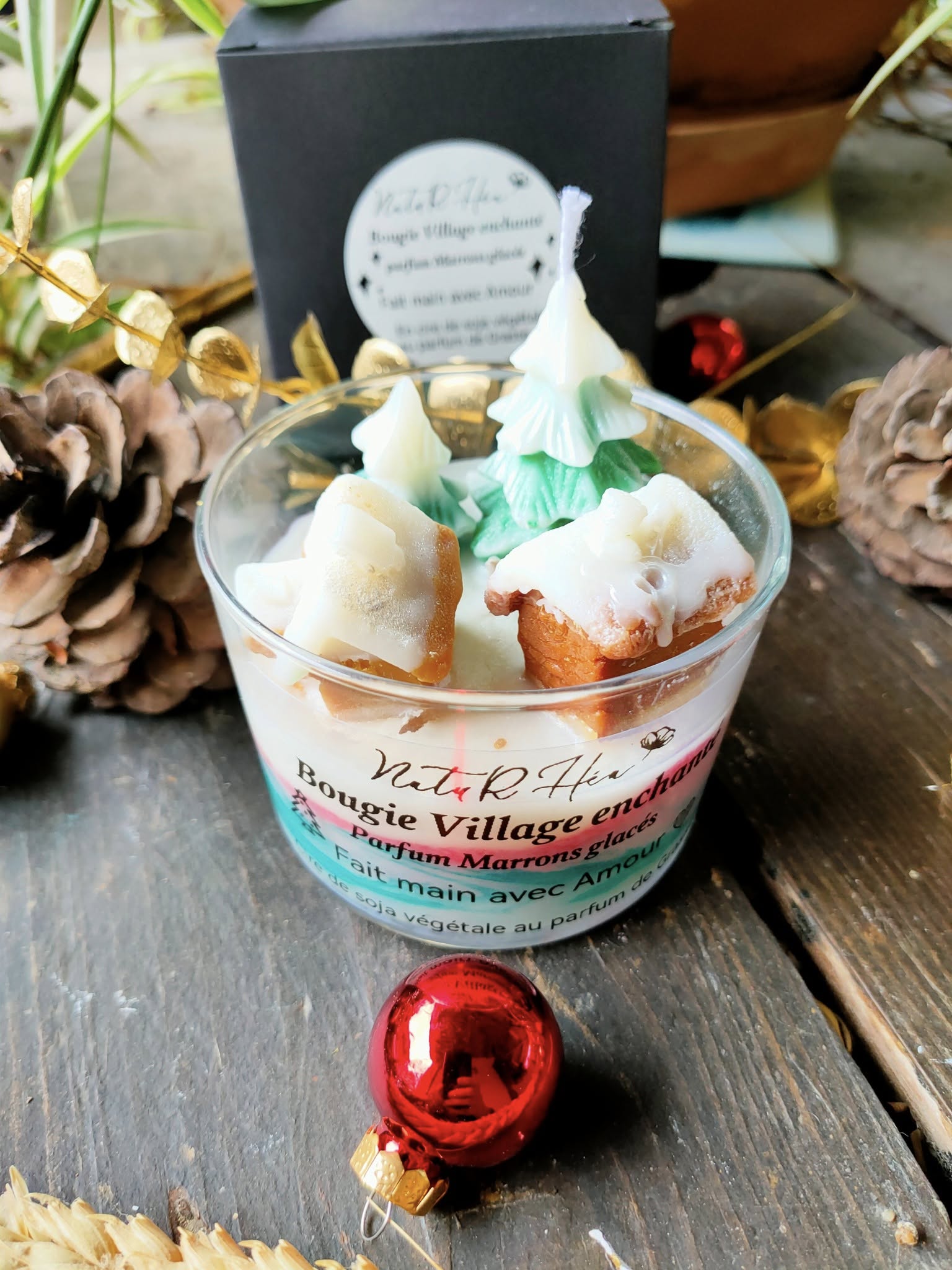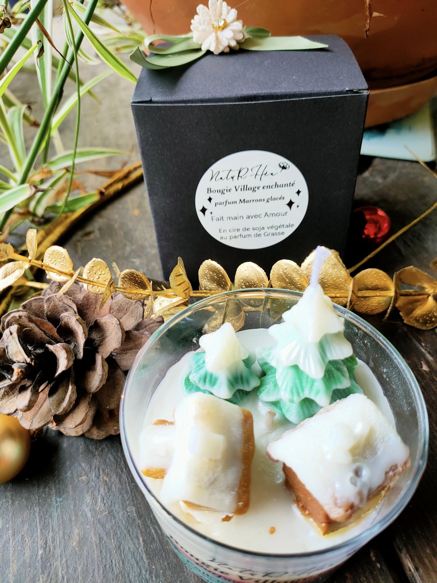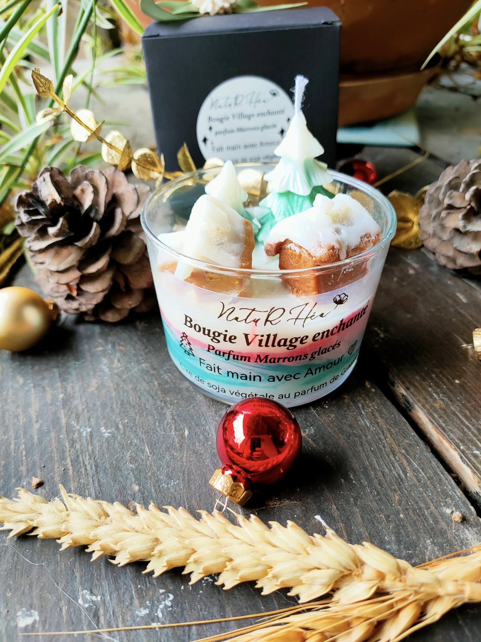 Découvrez la tendresse d'un hiver féérique avec notre bougie Village Enchanté. Son décor miniature évoque un petit village sous la neige, où l'air se pare du parfum réconfortant du marron glacé., doux et gourmand.