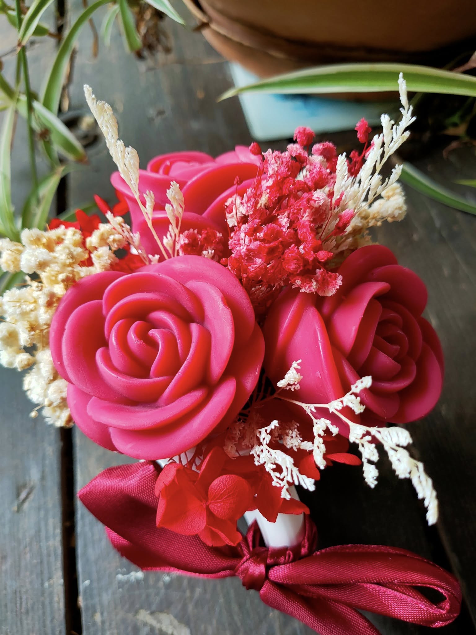 - fleurs en cire d'olive végétale de haute qualité, sans OGM, 100% naturelle, végétalien, biologique, sans produits dérivés du palmier, sans paraffine, non testé sur les animaux (cruelty-free)