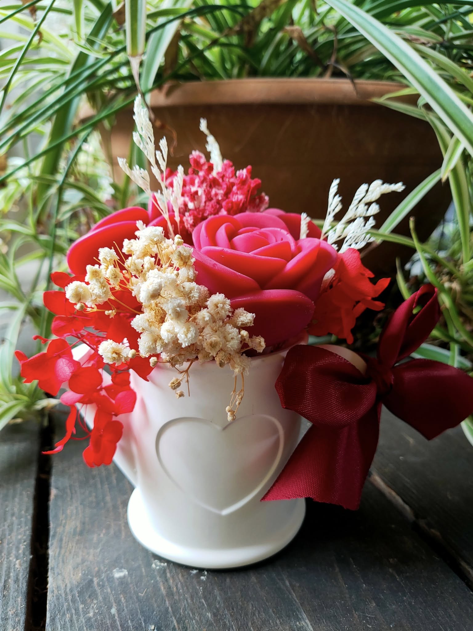 offrez ce merveilleux bouquet de Roses rouges éternelles dans son arrosoir en résine minérale, un cadeau original et unique. Une expérience visuelle et sensorielle hors du commun. Des roses qui ne faneront jamais et parfumeront votre intérieur, fabriquées à la main avec amour en cire végétale, au parfum de Grasse senteur "éclipse de lune" une senteur renversante, un parfum qui allie mystère et délicatesse, qui apporte une touche de sérénité , entourées de fleurs séchées naturelles