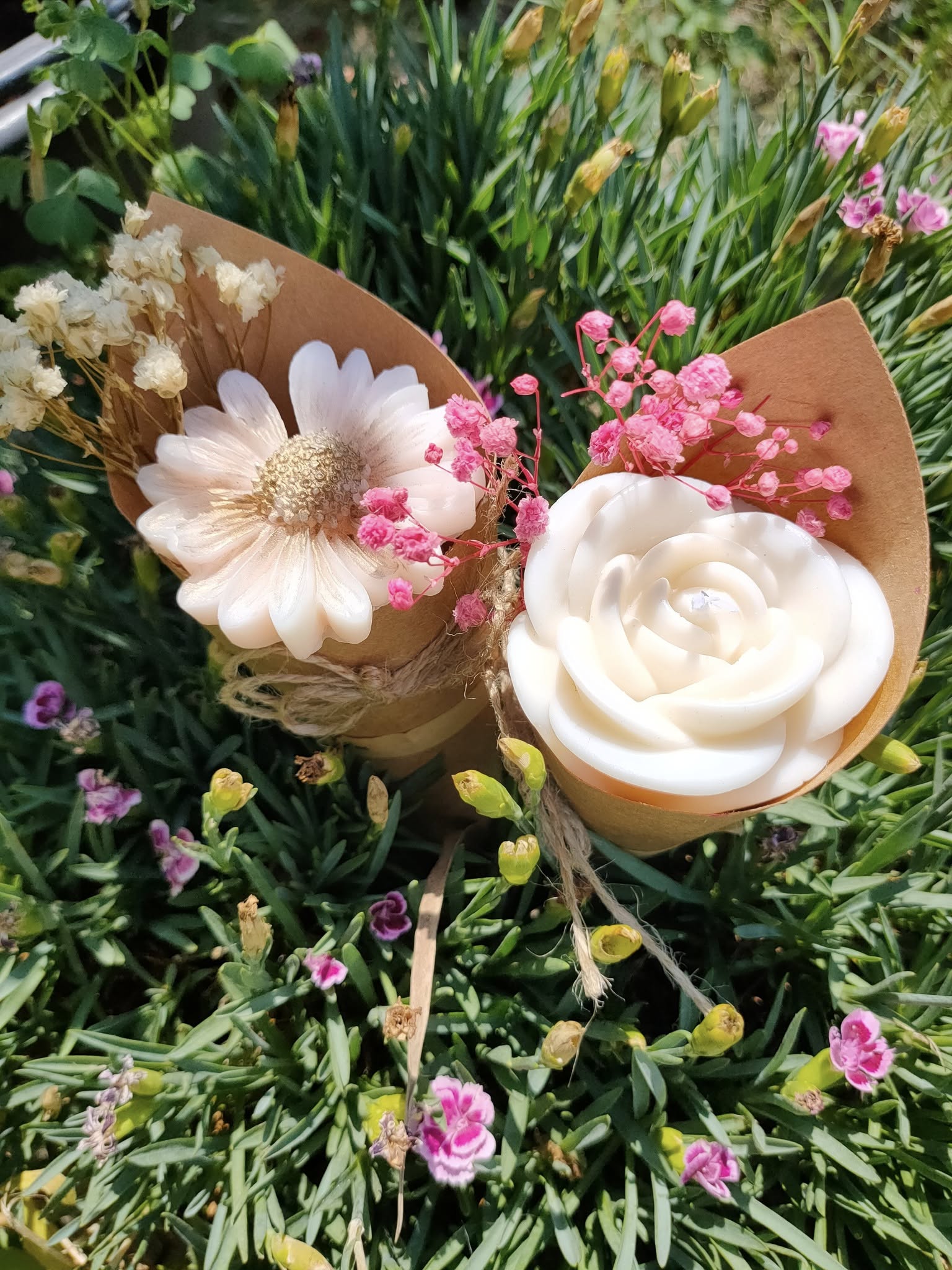- Fleurs en cire d'olive végétale de haute qualité, sans OGM, 100% naturelle, végétalien, biodégradable, sans produits dérivés du palmier, sans paraffine, non testé sur les animaux (cruelty-free)