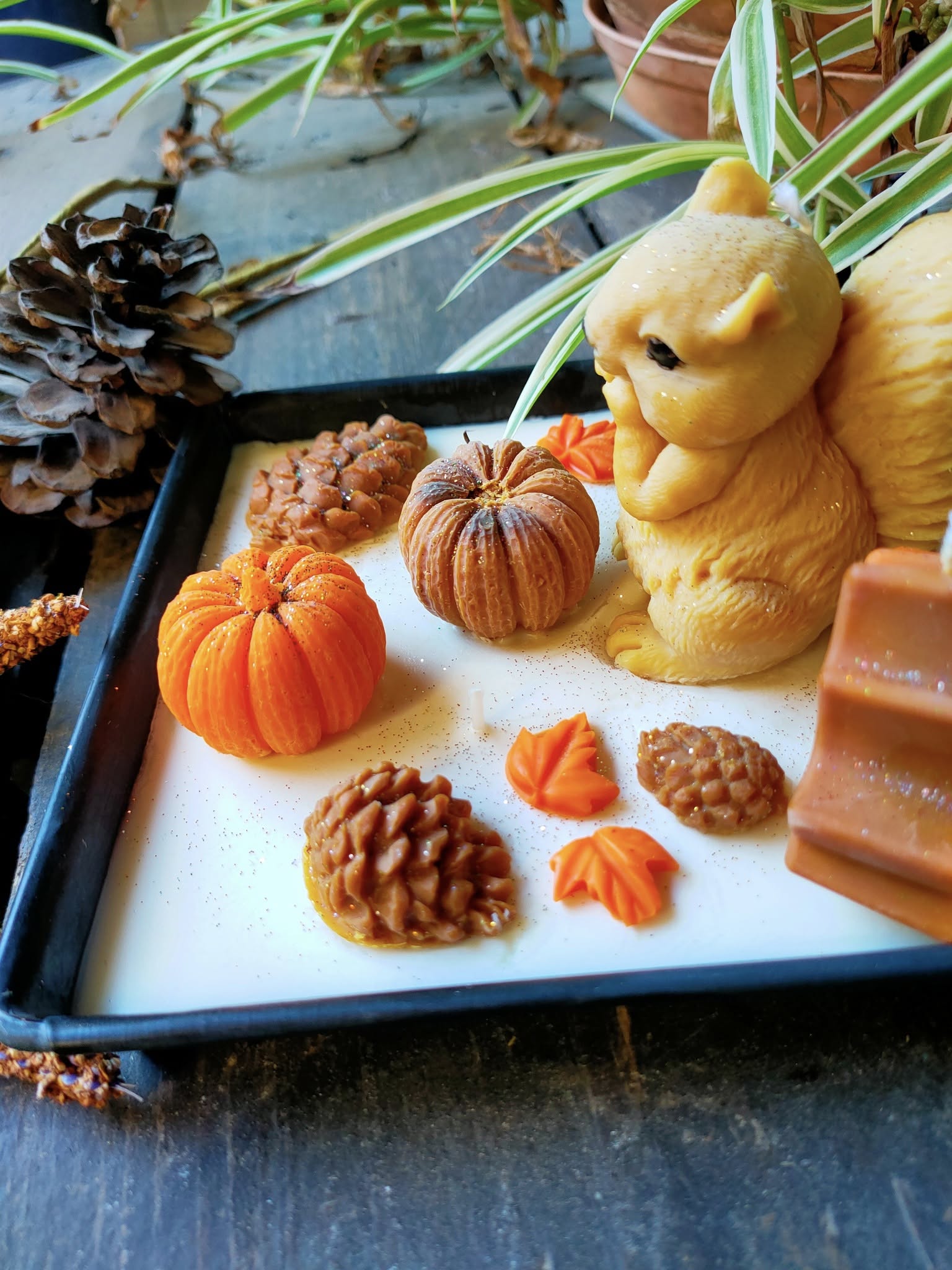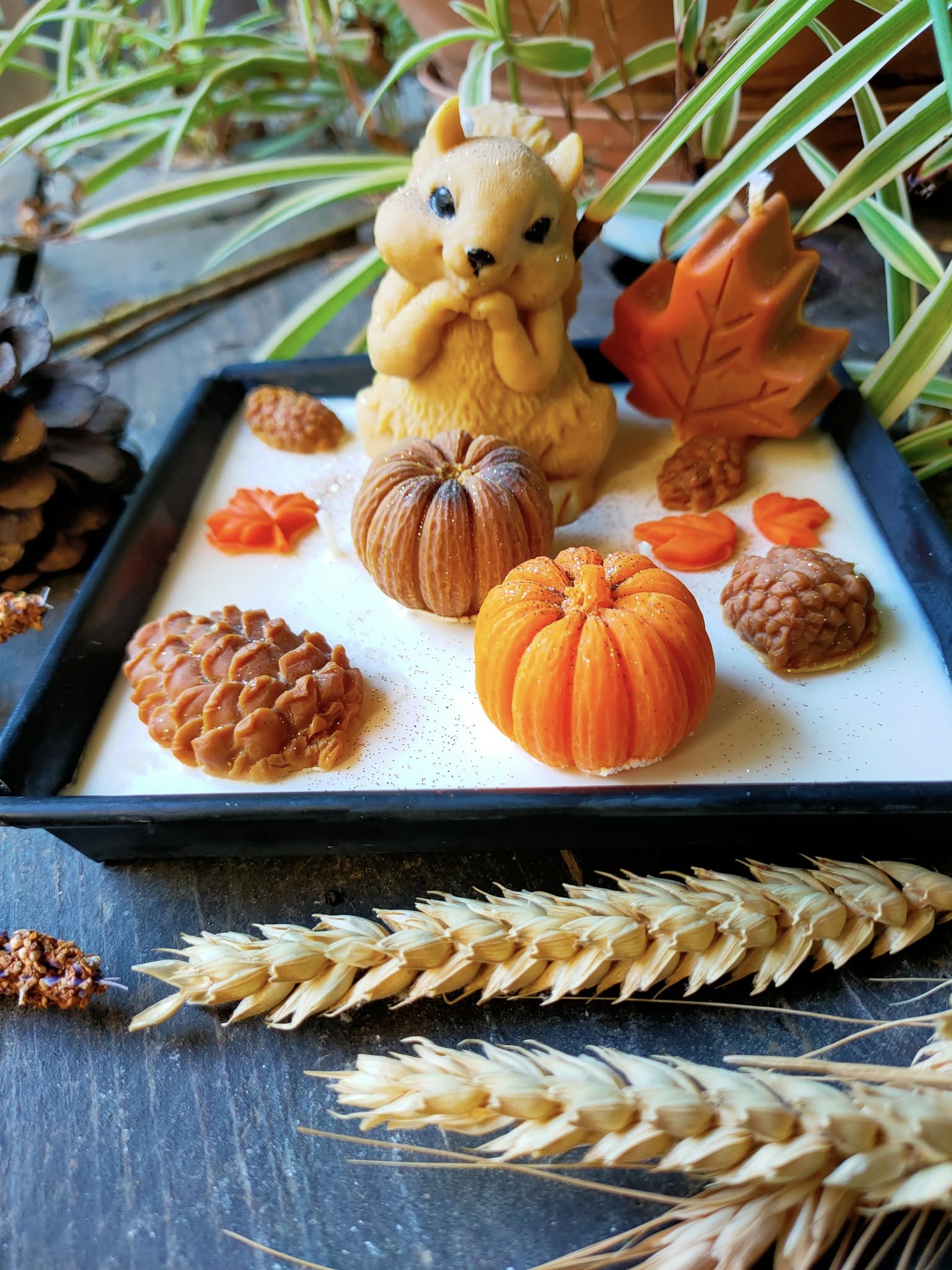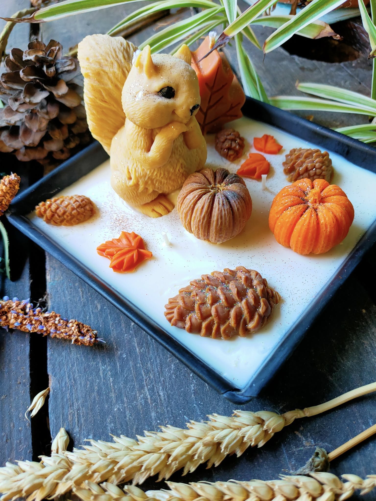 Cette jolie décoration de bougies en cire végétale aux couleurs de l'automne , avec son petit écureuil décorera à merveille votre intérieur. Une décoration faite à la main et unique . Son parfum Edelweiss , vous emmènera au sommet des montagnes où cette fleur pousse .