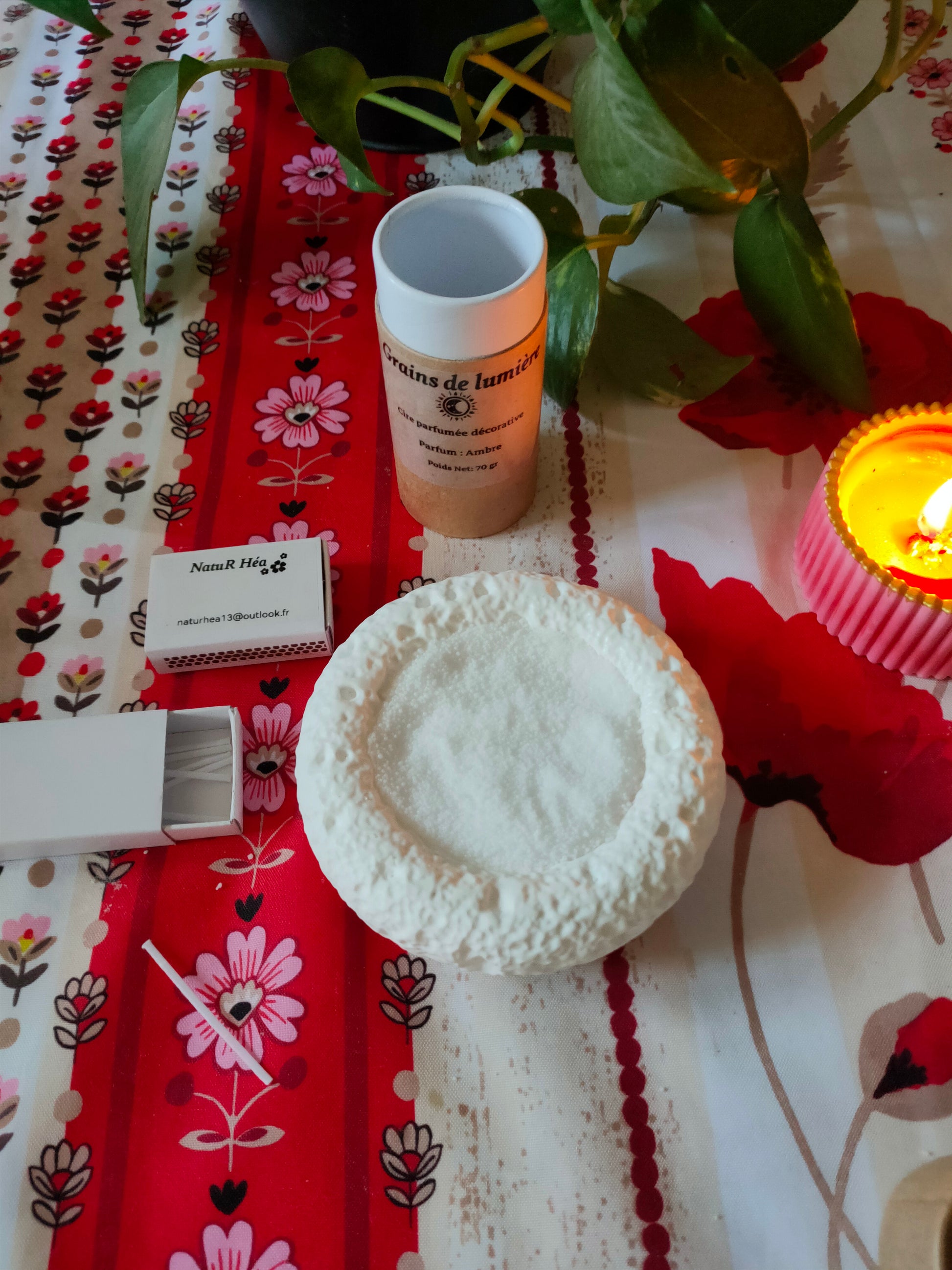 Grains de lumière est une cire à bougie parfumée en grains, prête à l’emploi, pensée pour créer ou recharger facilement vos bougies, sans étape compliquée.